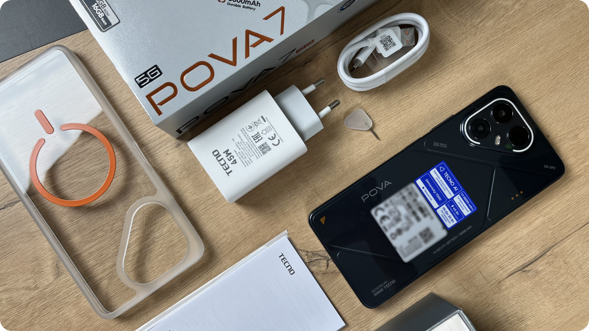 Tecno POVA 7 5G оснащён аккумулятором на 6000 мА·ч, который уверенно держит сутки активной работы. Быстрая зарядка мощностью 45 Вт позволяет восстановить 50% энергии примерно за 30 минут. Даже при играх и навигации смартфон разряжается медленно, что делает его отличным выбором для путешествий и долгих дней без розетки.