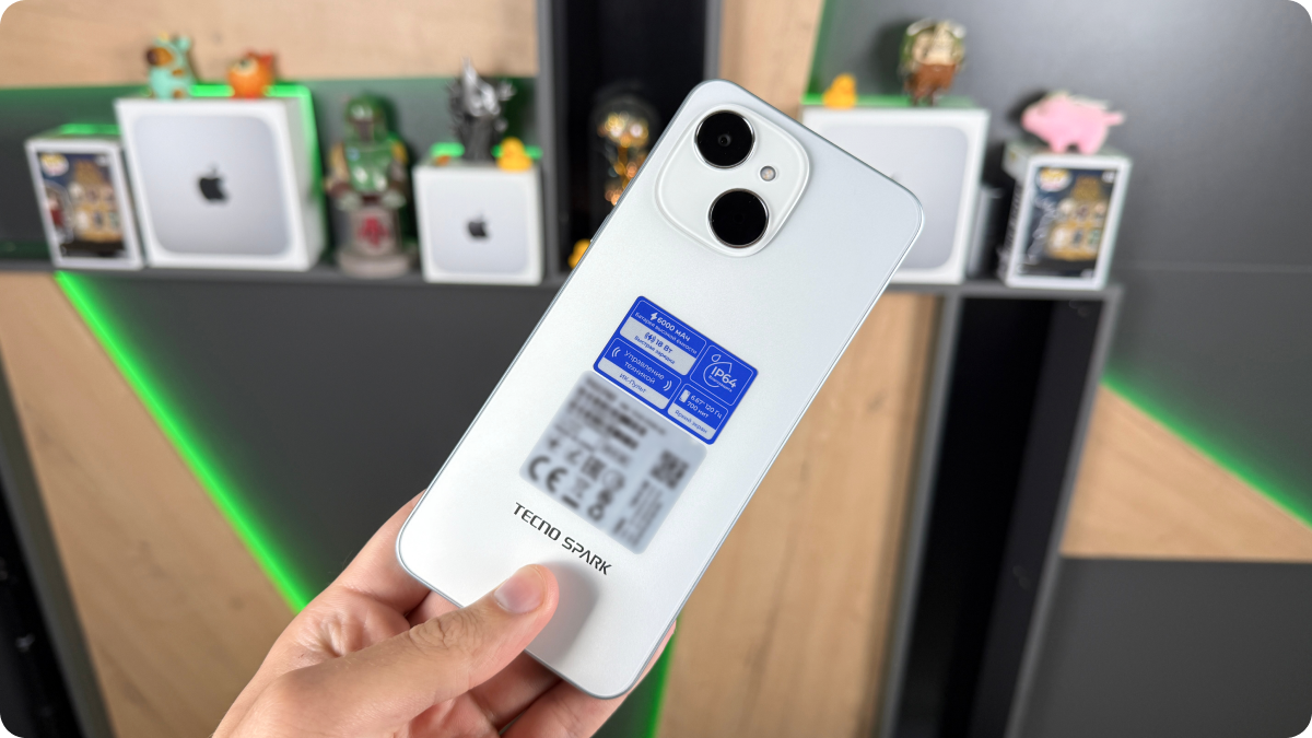 С первого взгляда Tecno Spark 40C не похож на типичный бюджетный смартфон. Матовый корпус из прочного пластика выглядит аккуратно и дороже своей цены, а эргономичные формы обеспечивают удобное удержание. Смартфон не скользит в руке, не собирает отпечатки и приятно ощущается на ощупь. На боковой грани — кнопка питания со встроенным сканером отпечатков, работающим быстро и точно. Отдельный слот для двух SIM и карты памяти избавляет от компромиссов, а порт USB Type-C делает повседневное использование удобным.
