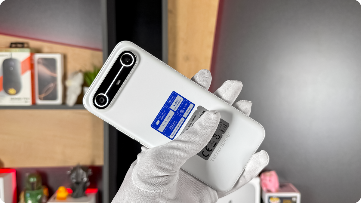 Главная особенность Tecno Spark Slim — толщина всего 5.93 мм. В живую смартфон выглядит почти как стеклянная пластина — лёгкий, утончённый и аккуратный. Блок камер с подсветкой Mood Light добавляет немного характера, но не выбивается из общего минимализма. Корпус получил защиту IP64 и стекло Corning Gorilla Glass 7i, так что ему не страшны пыль, дождь и случайные падения. Вес в 156 граммов делает его одним из самых лёгких в своём классе.