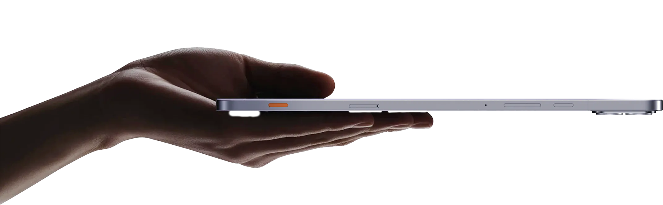 Tecno Megapad Pro LTE выполнен в тонком металлическом корпусе толщиной 6.9 мм, который приятно ощущается в руках и выглядит строго и современно. Габариты 278.7×173.6 мм делают планшет удобным как для чтения, так и для работы, а вес 547 граммов позволяет комфортно держать устройство длительное время. Плоские грани и аккуратная сборка придают модели ощущение монолитности.