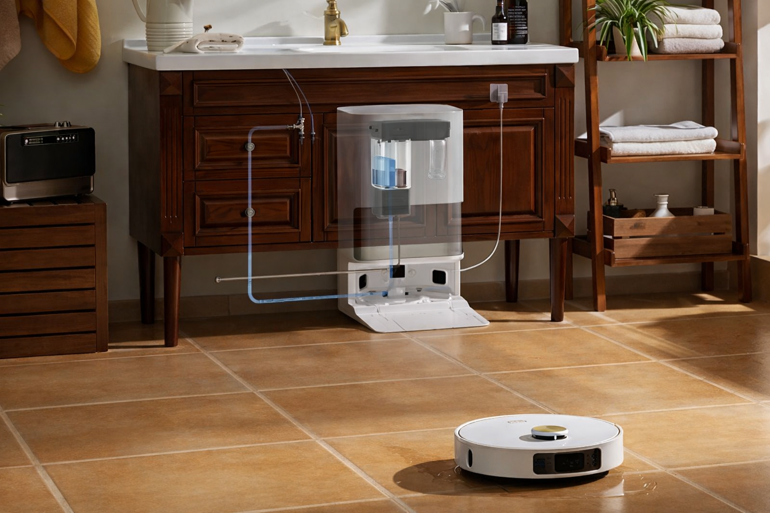 Подключение к водопроводу позволяет сделать использование робота-пылесоса еще более удобным в повседневной эксплуатации. Пользователю реже приходится вручную заниматься обслуживанием станции, что особенно актуально при регулярной влажной уборке.