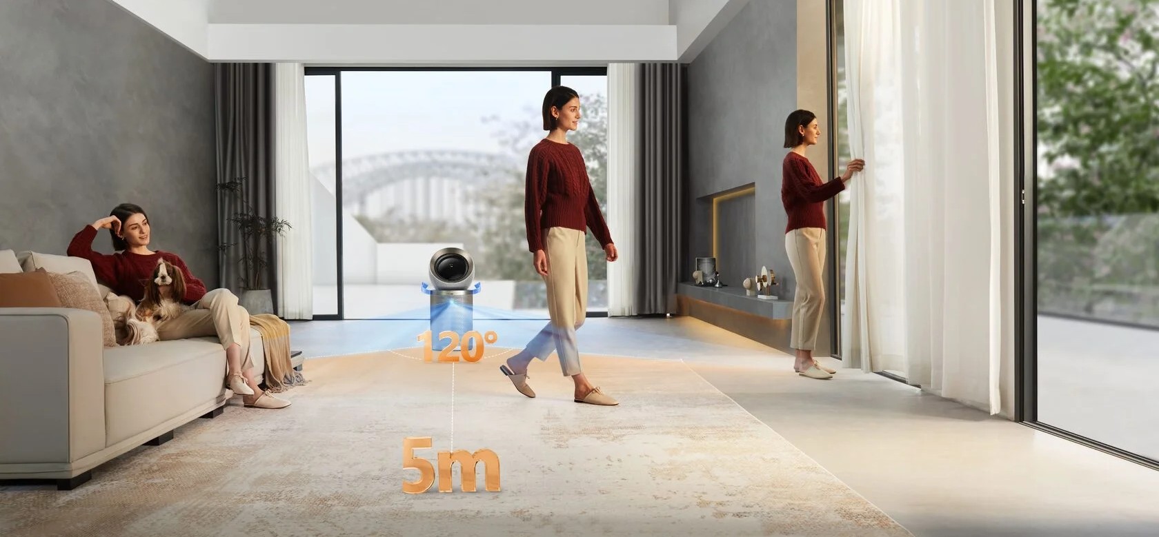 Доступны автоматический режим, комфортный режим и режим для домов с питомцами. Управление возможно с сенсорной панели на корпусе, с пульта или через смартфон по Wi-Fi в приложении Dreamehome. Поддерживается голосовое управление через фирменного ассистента Dreame. Встроенный датчик присутствия помогает устройству корректировать работу в зависимости от активности в помещении.