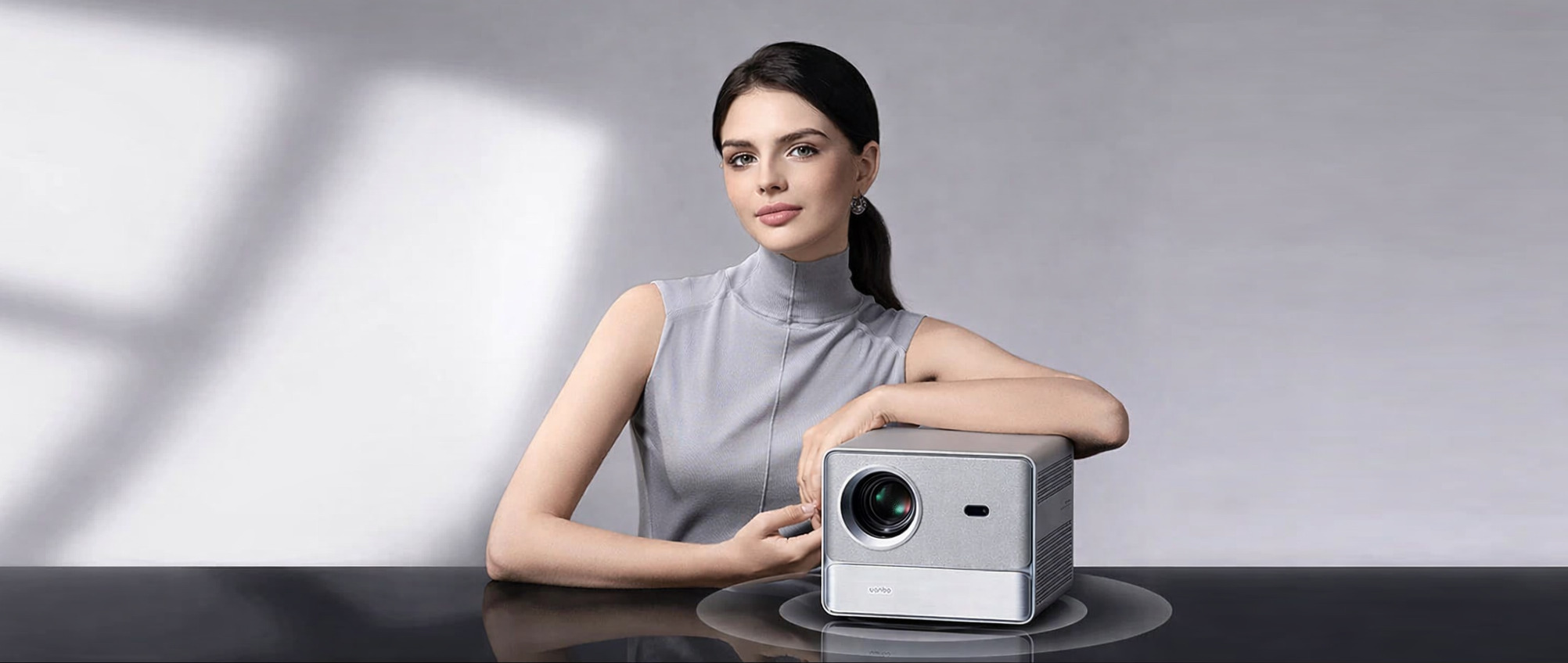 Wanbo Projector DaVinci 1 Pro выполнен в серебристом корпусе с аккуратными пропорциями и сдержанным внешним видом. Габариты позволяют удобно разместить проектор на столе или тумбе, а вес 2,8 кг делает его подходящим для стационарного использования дома. Конструкция ориентирована на комфортную установку и быструю настройку без сложных креплений.