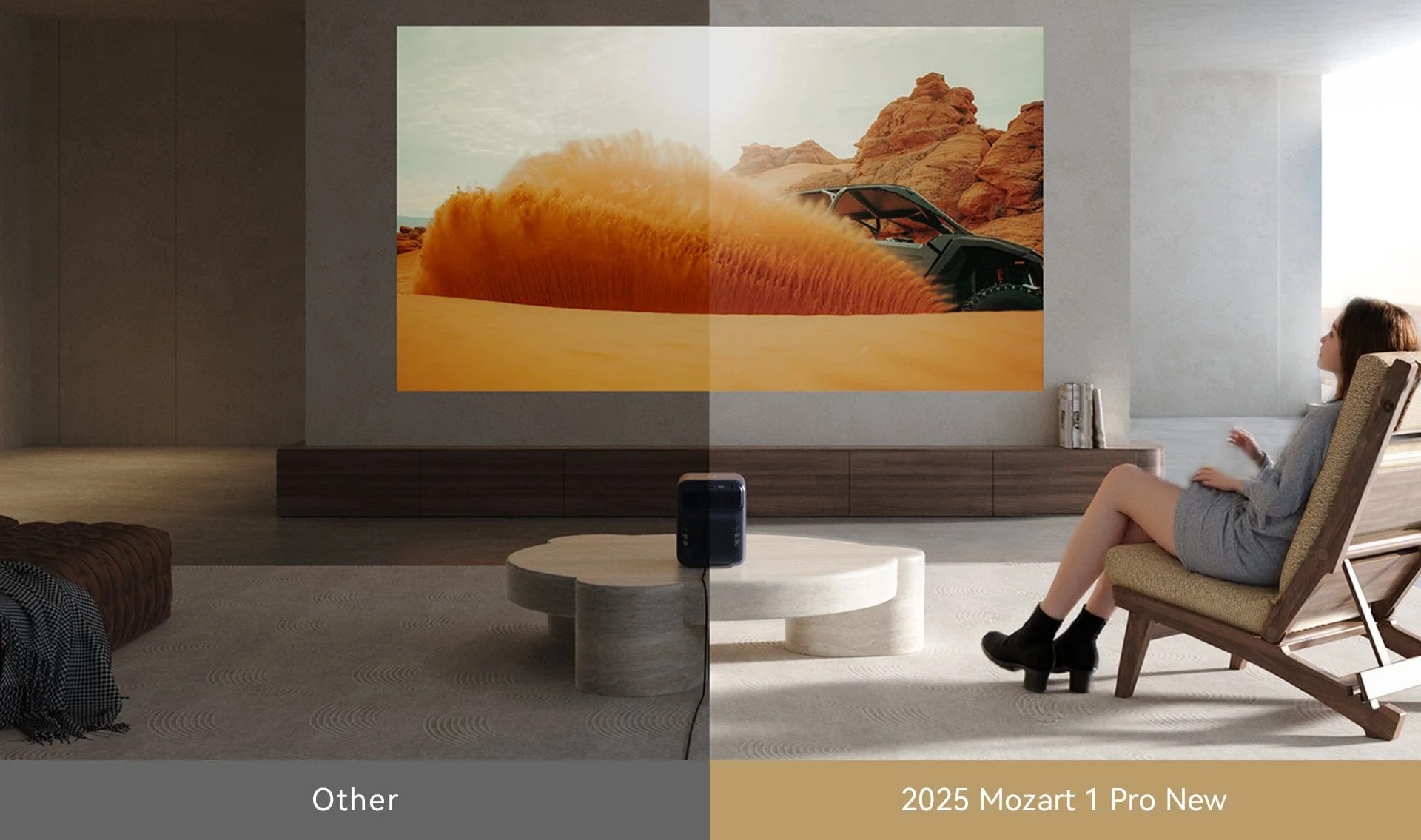 Wanbo Projector DaVinci 1 Pro работает на расстоянии от 1,49 до 3,25 метра, формируя изображение диагональю от 55 до 120 дюймов. Поддержка прямой, обратной и вертикальной проекции упрощает установку в разных условиях. Автоматическая фокусировка позволяет быстро получить чёткое изображение, а моторизированное масштабирование помогает точно настроить размер картинки без перемещения проектора.