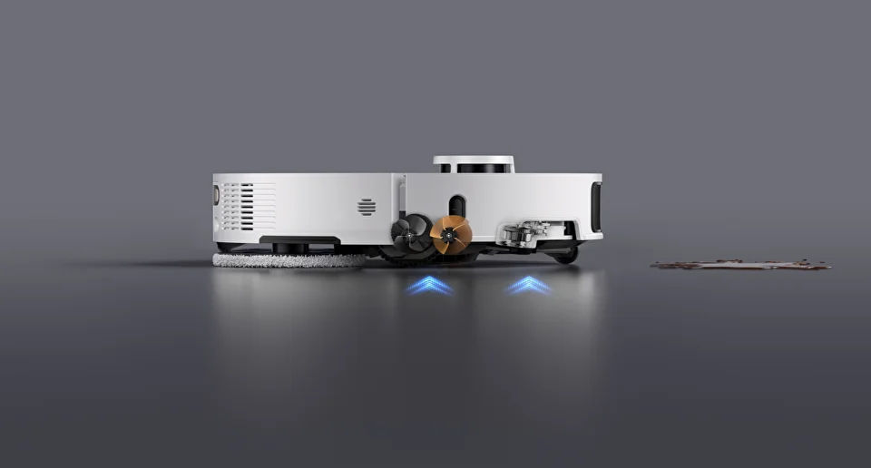 LiDAR, камеры, датчики перепада высоты и обнаружения ковров обеспечивают точную ориентацию в пространстве. Робот строит карту помещения, поддерживает ограничение зон и уборку по расписанию.