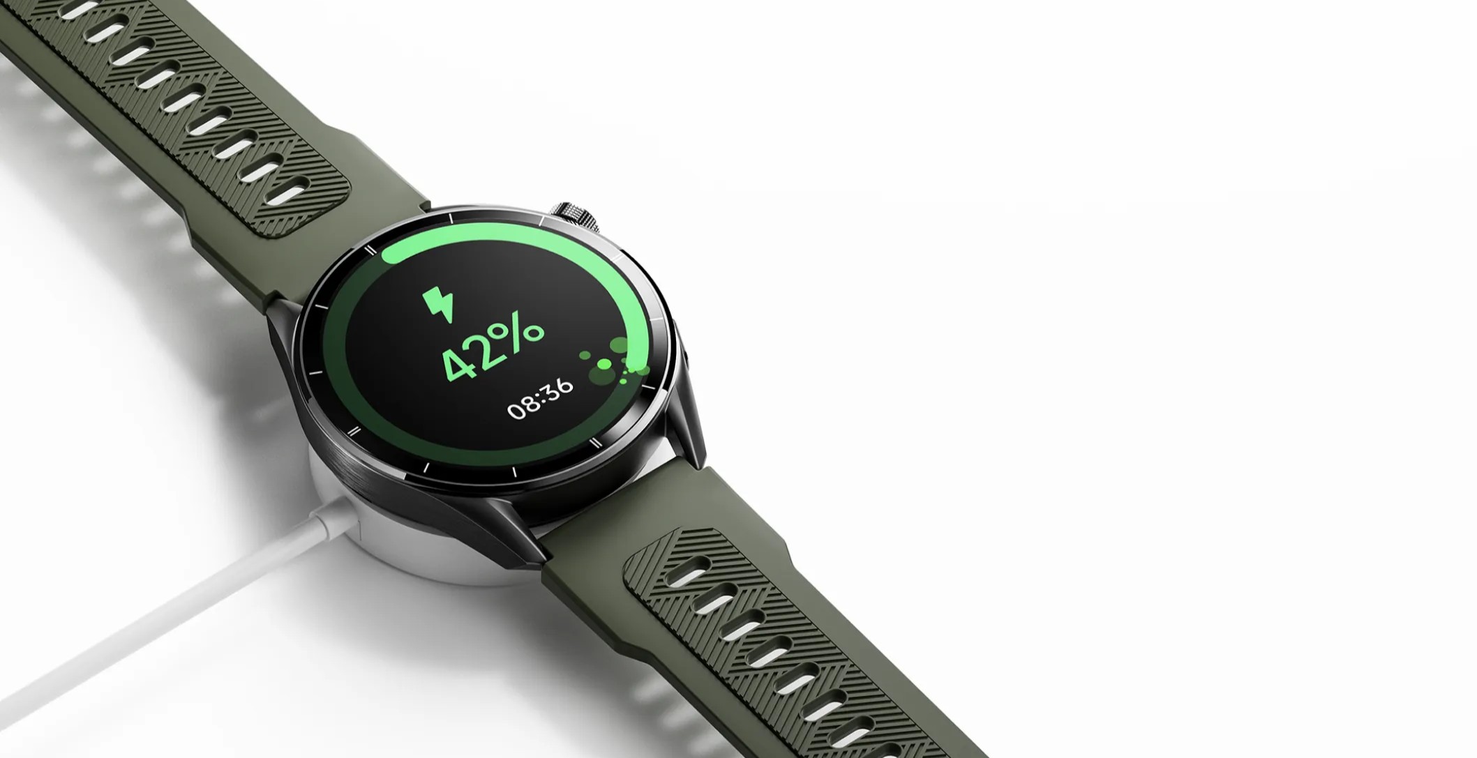 Батарея ёмкостью 256 мА·ч обеспечивает до 7 дней активного использования без подзарядки и до 14 дней в режиме ожидания. Для зарядки используется магнитный коннектор: часы легко фиксируются на базе и быстро восстанавливают энергию.