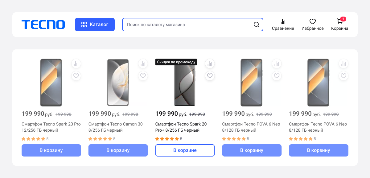 Выберите понравившийся вам товар и убедитесь, что на него действует промокод. Нажмите на кнопку «Купить» выбранного товара и перейдите в раздел «Корзина».
